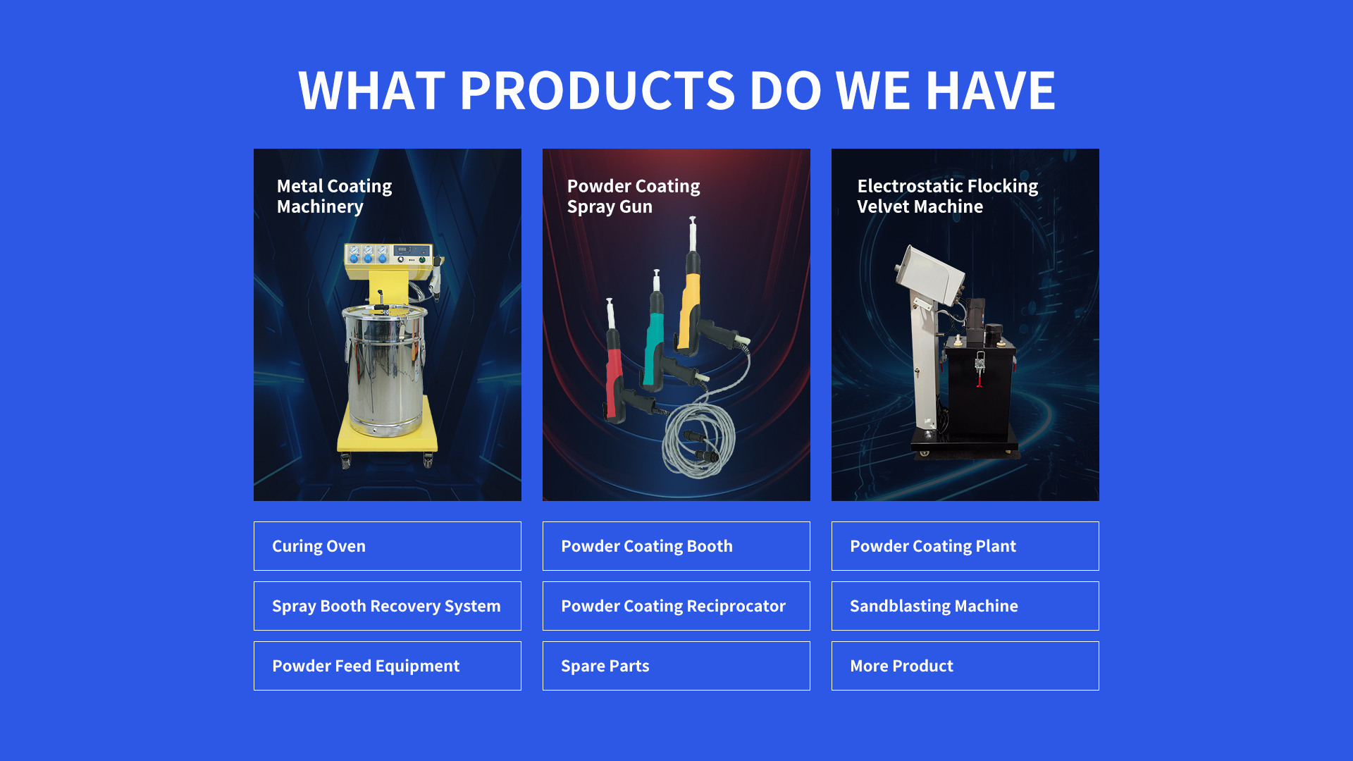 A Powder Coat Kit Factory produces compact systems for applying electrostatic powder coatings. Key components include a handheld spray gun, powder hopper, voltage generator (30–80 kV), grounding cables, and a small curing oven.